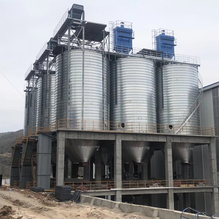接收与清理设置在筒仓中央该形式筒仓一般采用对称排列,提升机井架固定,经过提升后的物料通过仓顶溜管进人筒仓。这种形式省去了仓顶输送设备和上通廊,从而节省了建造费用,缩短了建造工期。对于贮存时间要求较长的大型粮库,则应根据物料的流向、场地情况、工艺要求等合理地配置投料口、工作塔、烘干塔及咸宁钢板仓的位置。国华钢板仓介绍了这几种常见的进料形式,实际中可将各种形式相互组合,相互渗透,根据实际情况合理搭配,灵活选用。